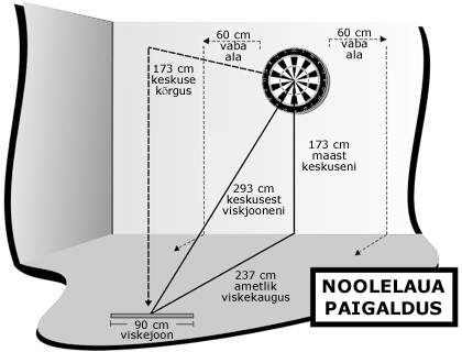 - Keskust (bulleye) loetakse duubel 25-ks (50). Kui viske tulemus viib punktisumma üle vajaliku nullini jõudmiseks vajaliku, siis punktid ei muutu ja jäävad samaks, kui enne viset.