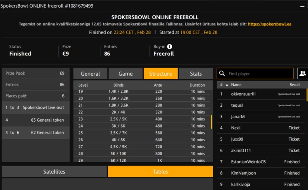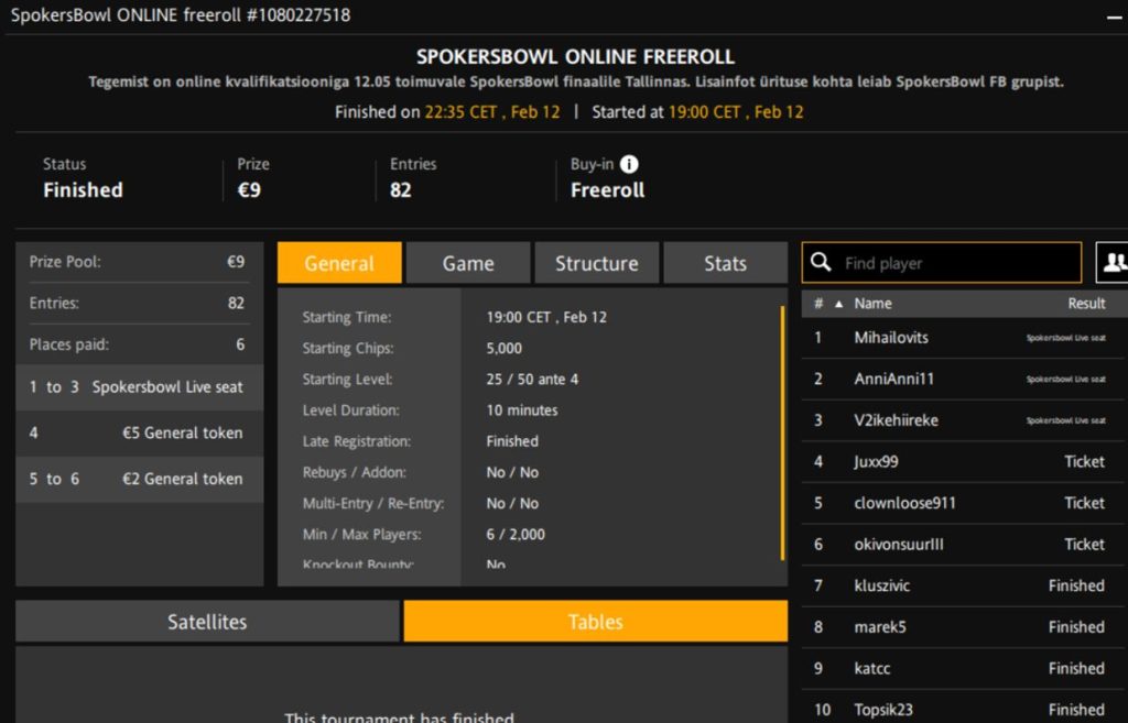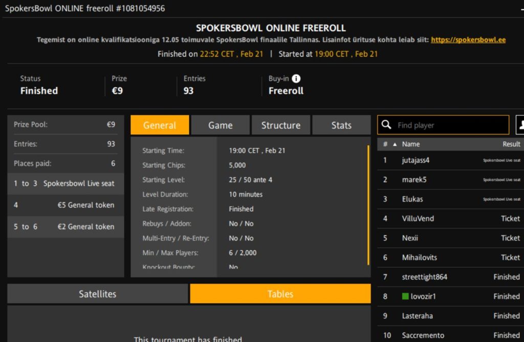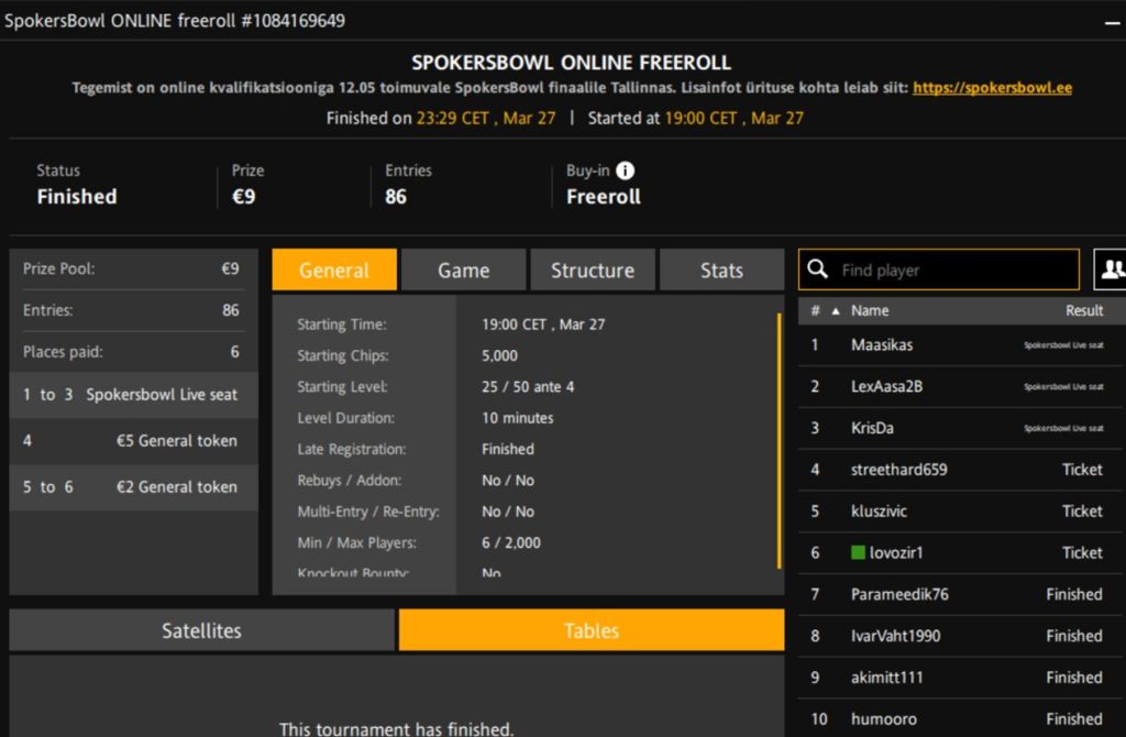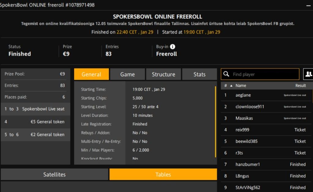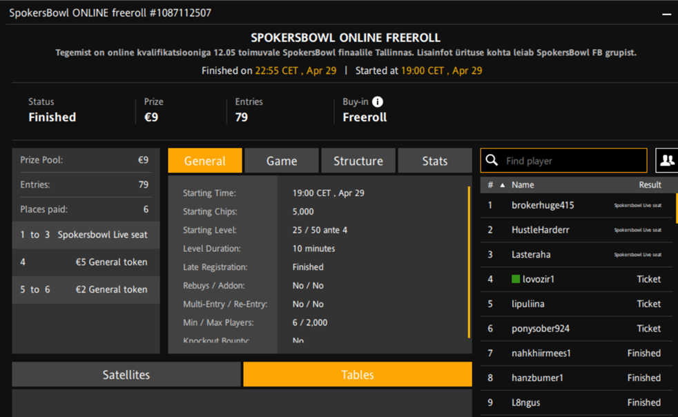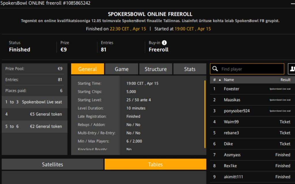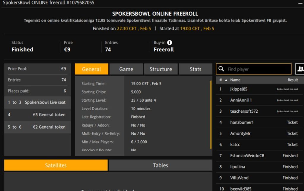 Turniiri nimi | SpokersBowl Online Freeroll |