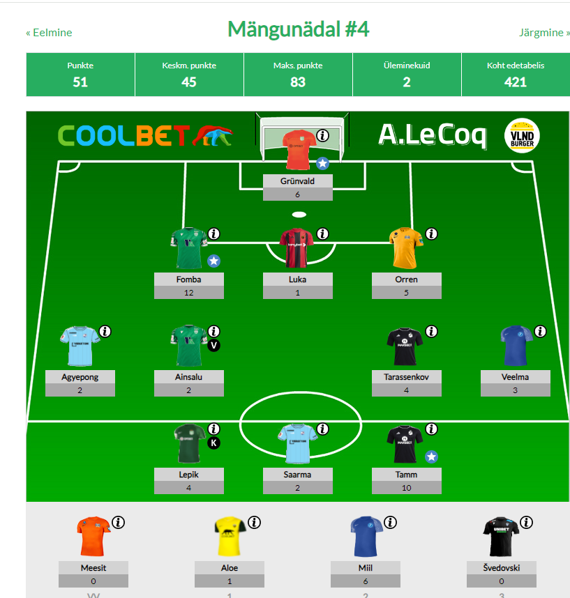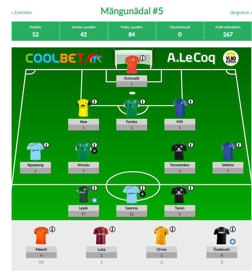 Aga kokkuvõttes senise hooaja parim voor. Teenisin 52p, keskmine oli 42p, kõrgeim 84p. Varu